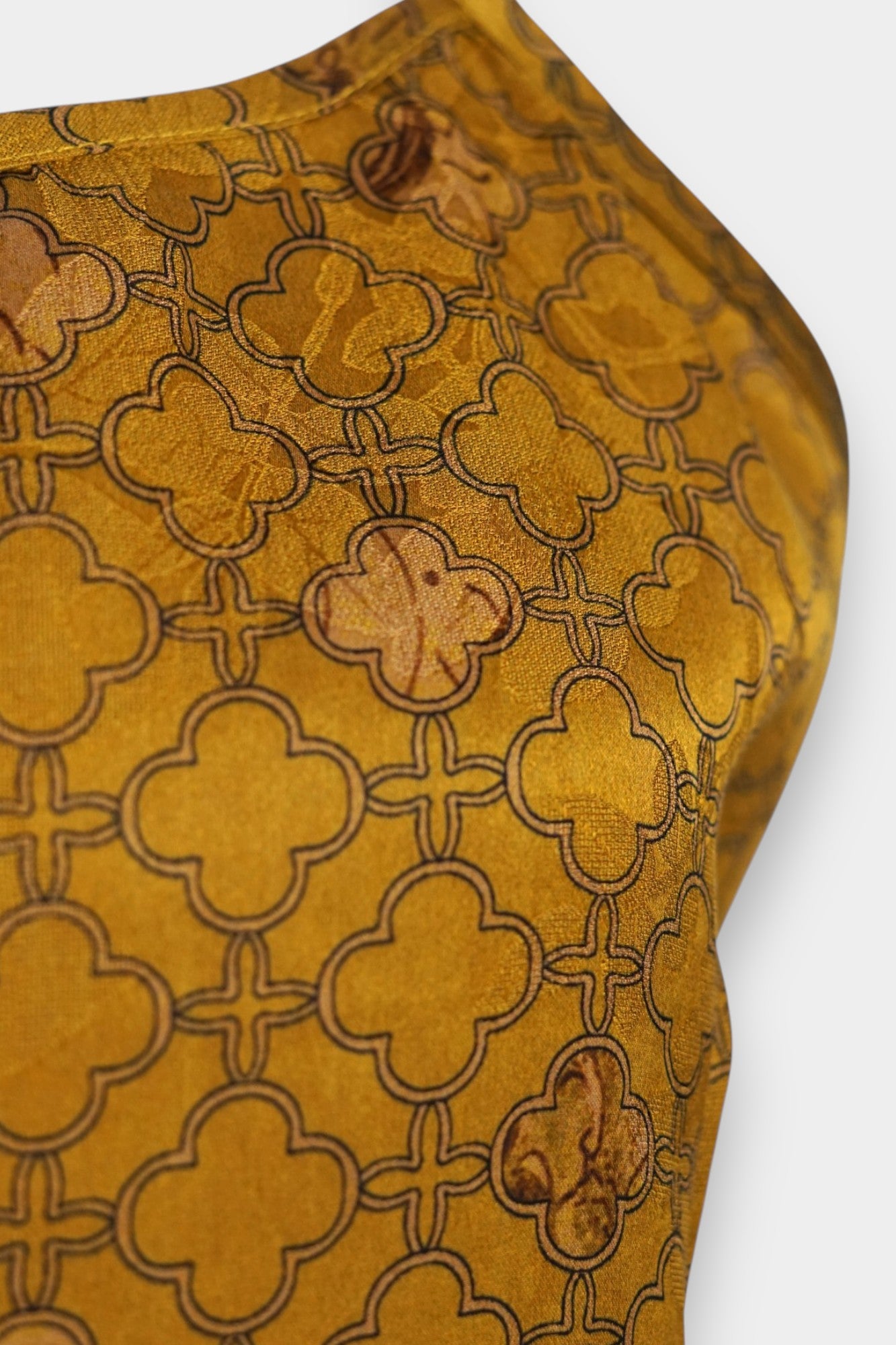 Gambiered Gauze Silk Blazer & Camisole Set | Gold Geometric Print