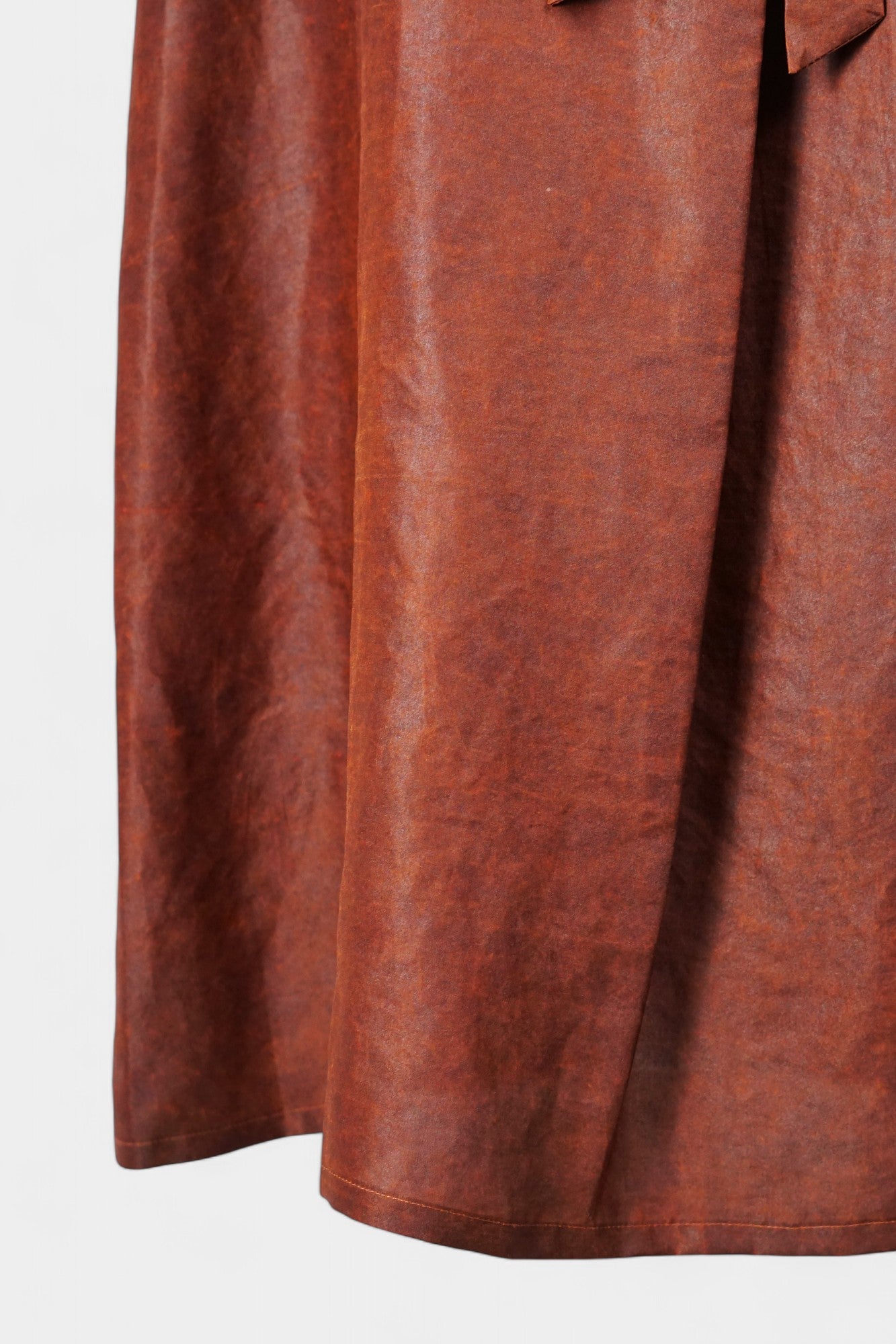 Embrace timeless elegance and natural protection with this Gambiered Guangdong Gauze Silk short-sleeve dress. The fabric is a traditional Chinese silk prized for its unique plant-based dyeing process, which gives it a beautiful, rich texture and a stunning red-brown hue. As with all Gambiered Guangdong Gauze Silk, this dress offers natural UV Protection, making it a perfect choice for the Australian climate.