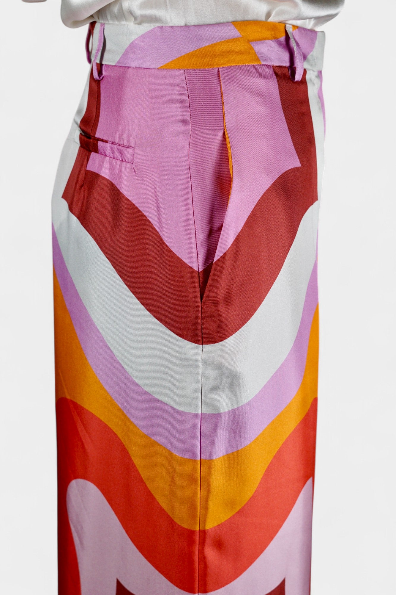 Made in Italy Mulberry Silk Trousers | Multi-Colour Abstract Print