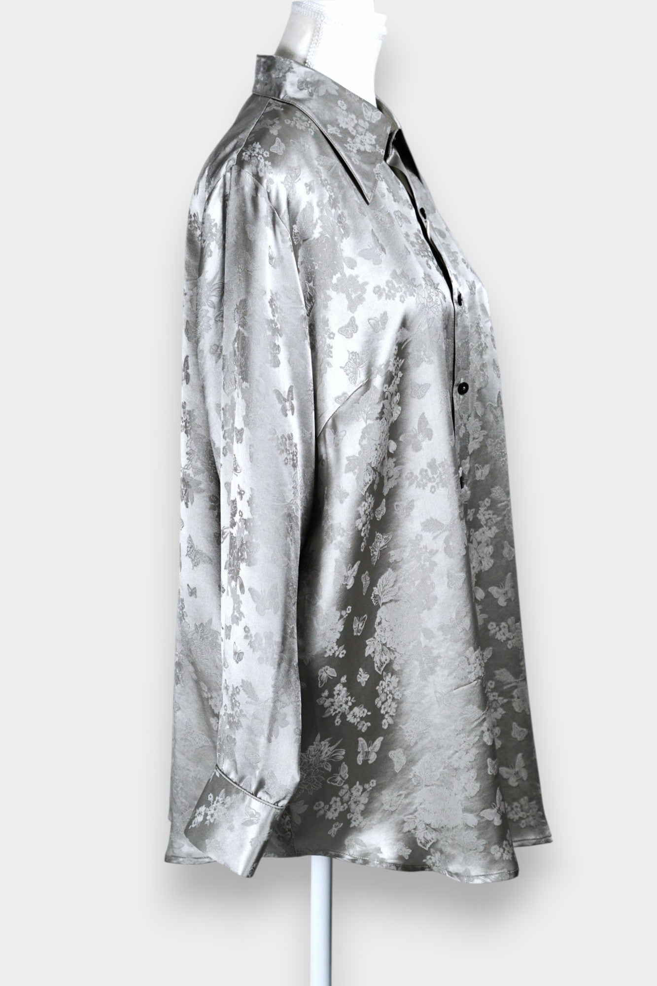 Handcrafted Mulberry Silk Shirt | Silver Floral Jacquard