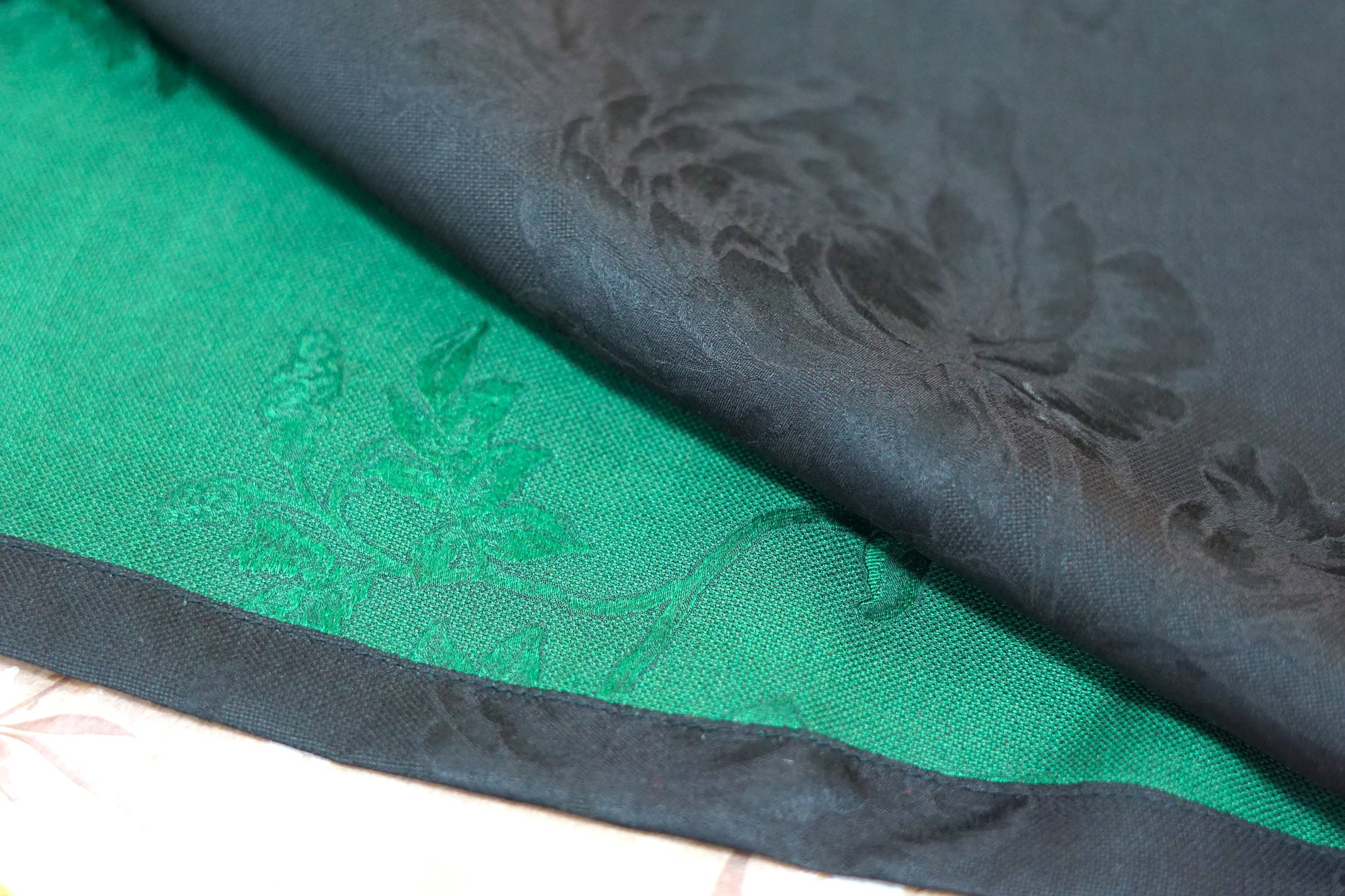 This unique top is designed to be worn on two sides. One side is a rich, vibrant green with delicate black trim on the neckline and sleeves, offering a bold and fresh look. The other side is a classic black, providing a sophisticated, timeless alternative. With this two-in-one design, you can effortlessly switch your style to match any mood or occasion.