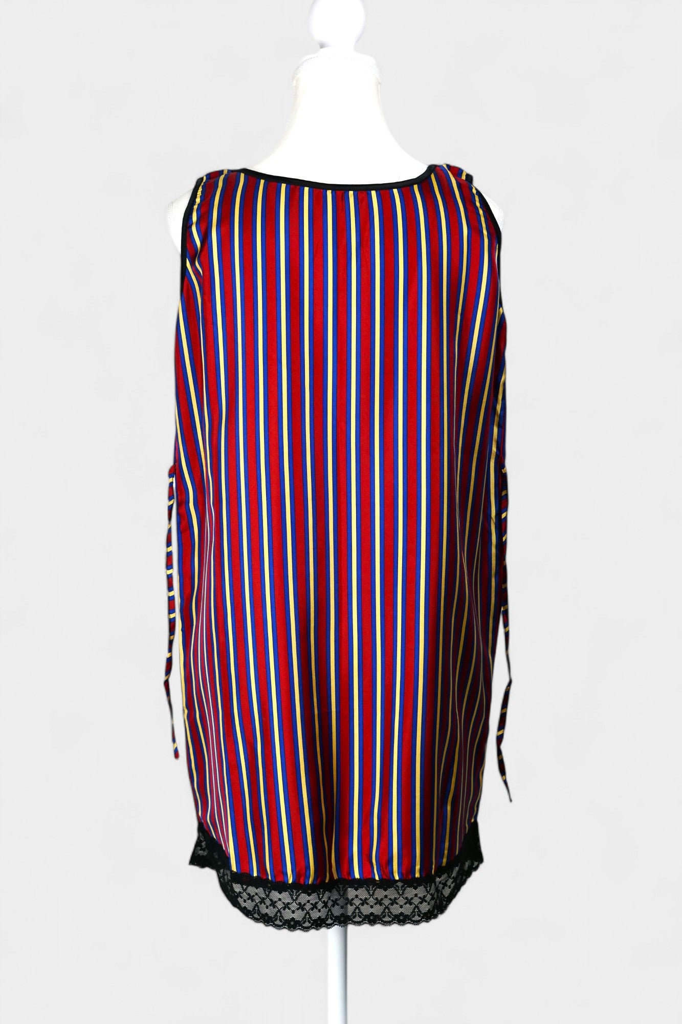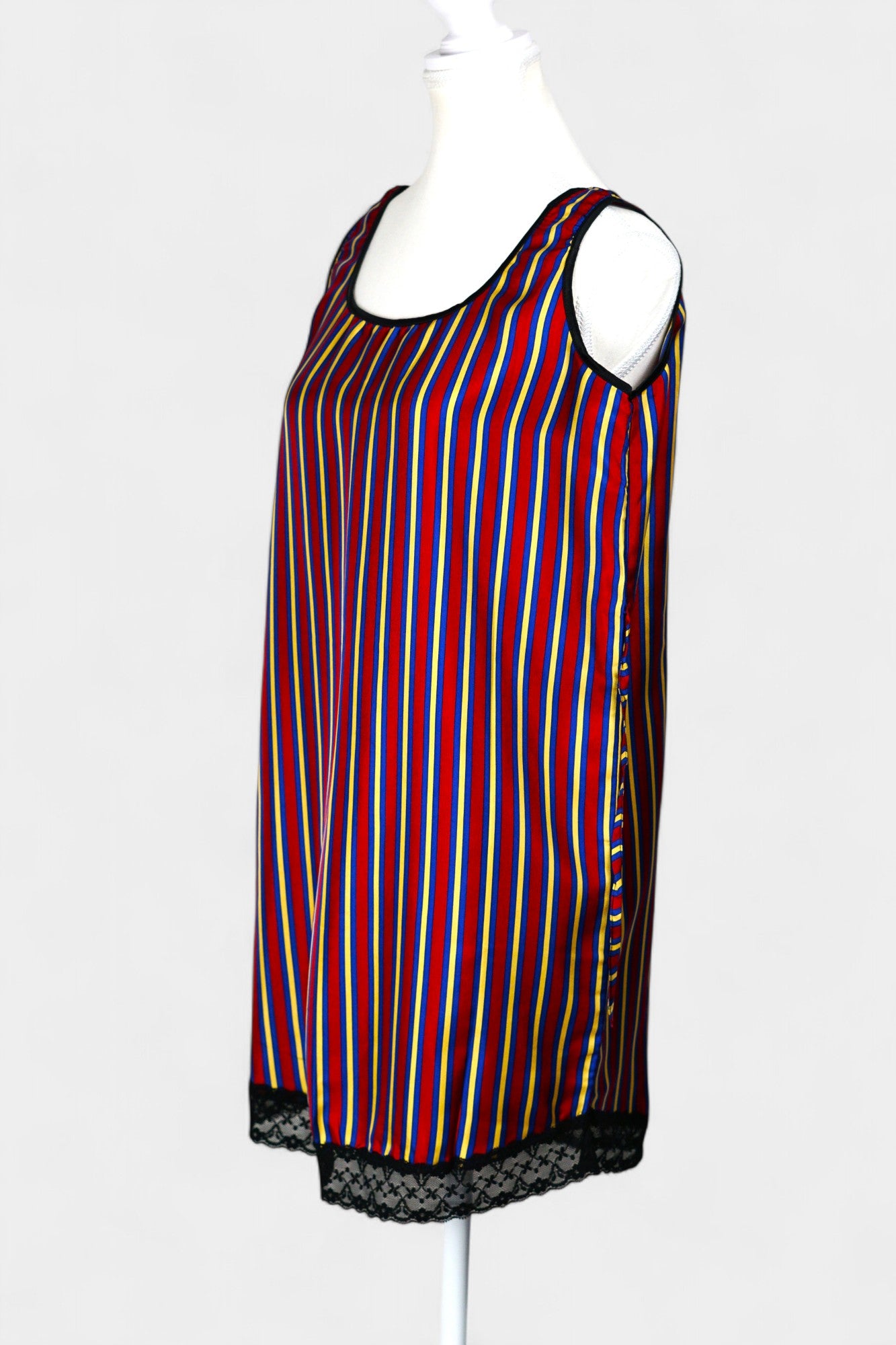 Embrace effortless elegance with this stunning Pure Mulberry Silk Striped Sleeveless Dress. Crafted from 100% pure Mulberry Silk, this dress is exceptionally soft, lightweight, and breathable, making it a luxurious choice for the Australian climate. The classic vertical stripe pattern in bold red, sunny yellow, and deep navy is visually slimming and endlessly chic.