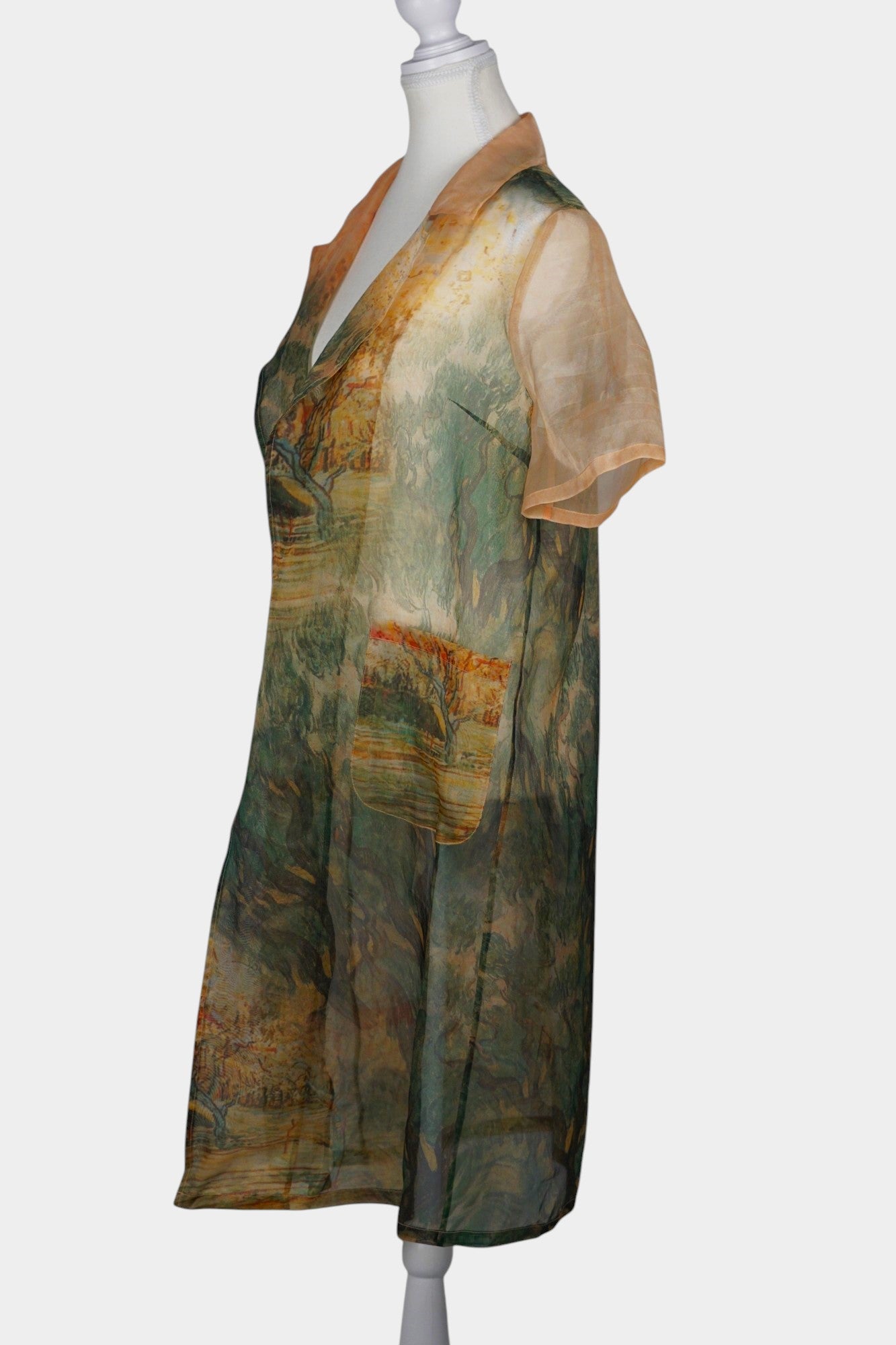 Mulberry Silk Organza Jacket | Scenic Print Cardigan